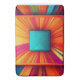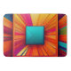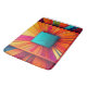 The Cosmic Velocity Bath Mat is a masterpiece of light and motion. Featuring a central teal square that acts as a focal point, the design explodes outward in a sunburst of radiant magenta, electric orange, and deep violet rays. The intricate line-art textures and shifting colour gradients create a 3D effect that feels like you’re looking into a glowing digital prism.