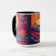 The *Cosmic Vortex Mug* features a striking abstract design that pulls you into a swirling fusion of vibrant colours and mesmerising patterns. The deep blues and purples resemble a distant galaxy, while streaks of fiery orange and electric pink mimic a cosmic storm. This bold design wraps around the entire mug, creating a sense of movement and energy. Perfect for adding a pop of colour to your morning routine or as a unique gift for lovers of art and the universe. Let your coffee take you on a stellar journey with every sip!