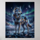 Cosmic Wolf Under Aurora Sky Poster