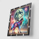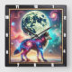 Cosmic Wolf with Galactic Elements and Moon Square Wall Clock