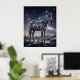 A striking cosmic zebra stands proudly within an open starlit landscape, its iconic stripes transformed into glowing bands of nebula light and deep space textures. The contrast between darkness and luminous energy creates a bold and visually captivating design. Set against a vast celestial horizon, the scene feels clean, modern, and powerful. This artwork is perfect for contemporary interiors, minimalist spaces, and collectors seeking a unique blend of wildlife and cosmic artistry.