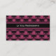 Elegant Cosmopolitan Glam Business Card design in burgundy pink featuring a sophisticated swirl flourish pattern background. Easy to customise, simply add the details of your business in the text fields provided. Click on the "Customise It" button to find additional personalisation options.