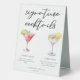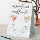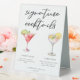 This sophisticated signature cocktails menu table tent sign features simple black typography above 2 of your favourite drinks and their ingredients for your coastal wedding bar. A chic Cosmopolitan and Lemon Drop drawing add a fun flair to your bar menu. Complete with the couple's names and date for their reception.