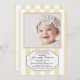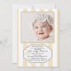 Alternating cream and white stripes and a decorative panel beneath the photo window create this lovely, unisex invitation. The featured cross can be dragged to any location, made larger or smaller (+-) or eliminated.