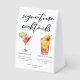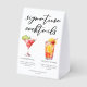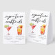 This sophisticated signature cocktails table tent sign features simple black typography above 2 of your favorite drinks and their ingredients for your coastal wedding bar. A chic Cosmopolitan and Tequila Sunrise drawing add a fun flair to your bar menu. Complete with the couple's names and date for their reception.