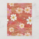 Keep in touch with friends and loved ones with a beautiful chiyogami pattern postcard featuring pink and white cosmos flowers on a red background.
