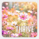 Pink cosmos in sunlight with the inspirational word "thrive".