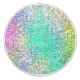 Colourful abstract mosaic with blues, greens, pinks, oranges, and silver.