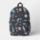 Cool pattern for boys. Cosmos with spaceships, planets, and stars. Blue tones with gold and pink accents. Customisable monogram on the front.