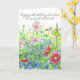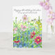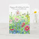 A colourful floral happy birthday card to a special friend featuring yellow snapdragons, bright pink cosmos, chamomile and pink wildflowers with a visiting honey bee drawn in pen and ink with watercolor. You can customise the name and/or wording to fit your needs.