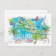 Costa Rica Illustrated Travel Map with Roads Postcard