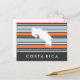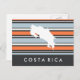 Modern design of Costa Rica map in white and personalised text, celebrate your Costa Rican pride. Background in stripes; blue, grey, orange and white.