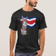 I give wanted to give this a 4 instead of a 5 because these Basic DARK T0shirts run unexpectedly SLIM or Narrow. Which is great if you do not have a potbelly, but I have a paunch. It isn't the shirt's fault that I've got a beer belly. The design and shirt itself is a quality cotton shirt. The color is more of a deep purple, but still a very pretty color. The Basic DARK T-shirts run a bit SLIMMER than the Basic Ts. The neck is a fraction narrower (or seems to be narrower) also. I'm a paunchy middle-aged woman and my neck is 12 inches (31cm) thick and the neckline fell about the same as in the photo of the man, and I had the desire to tug it a bit. So if you're a thick necked man or like loose shirts, be aware these are slimmer shirts. Once I get rid of my lockdown paunch it'll look great. The shirt washed well in cold water with no apparent bleeding. We don't have a dryer, so it hung dry. Did not shrink. Love the colors and the design. The design looks smaller on my shirt than it does on the model on-line. But still, it looks good on the shirt. The printing looks as it does on the model, just the size seems fractionally smaller. Washed garment in cold water, hung dry and design appeared unaffected.