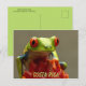 Postcard featuring a colourful Costa Rican Red-Eyed Tree Frog with his big red eyes against bright lime green skin. Fun for a frog lover! Photograph taken at Vara Blanca, Alajuela, Costa Rica.