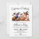 Halloween Cocktail Party Invitation — Costumes & Cocktails, White Background, Watercolor Halloween Drinks, Candy, Skulls, Pumpkins, Witch Hat.