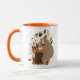 Unique fall illustration of an autumn girl drinking hot pumpkin spice coffee from a coffee mug, wearing orange sweater, covered with burgundy throw blanket, sitting around fall flowers, fall leaves, orange pumpkin, green squashes, apples for home decor, wall art, nursery decor and stationary. It's a unique autumn coffee mug with a cosy girl, tea cup, brown, orange and burgundy autumn leaves and flowers. This fall tea cup is a perfect seasonal gift for her and kids: your friend's daughter, sister, cousin, daughter, mum, wife, grandma and niece! Get an autumn harvest coffee cup for girls now!