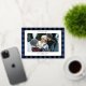 Cosy Blue Black Plaid Border 3 Photos Christmas Foil Holiday Card
