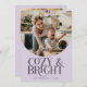 Elegant holiday card featuring a typography text that says "cosy & bright" below your arch shaped photo. Add a second photo on the back along with your message. Background is purple.