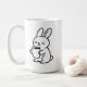 A cute, minimalist hand-drawn doodle of a sleepy bunny enjoying a warm cup of coffee. Perfect for rabbit lovers and coffee enthusiasts who appreciate a cosy, simple aesthetic.