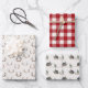 Bring the warmth and charm of a winter cabin to your gift-giving with this Cosy Cabin Collection wrapping paper set. Perfect for the holiday season or rustic-themed occasions, this set includes three distinct designs: a classic red and white buffalo plaid, a pattern of hand-drawn antlers on a cream background, and a delightful winter scene featuring a cosy cabin nestled among pine trees.