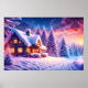 This gorgeous Cosy Cabin At Winter Wonderland Poster will really dress up your wall with peaceful winter charm during this Christmas season. This is an AI image generated by me.