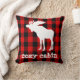 A white moose silhouette on red and black buffalo plaid. A rustic throw pillow for your cosy cabin! Customise with the text of your choice.