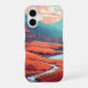 A peaceful digital painting of a cabin near a winding stream surrounded by vibrant autumn foliage with mountains and a colourful sky in the background.