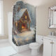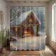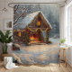 Embrace the joy of the holiday season with our exquisite Cosy Cabin Christmas Shower Curtain. This stunning design captures the quintessential charm of a winter wonderland, depicting a quaint, snow-covered stone cottage adorned with twinkling fairy lights and bright red bows. The highlight is the warm, inviting glow of a crackling fireplace, offering a sense of peace and relaxation that is perfect for any bathroom.