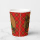 This Thanksgiving Holiday Cup featuring a country-style design of pale olive green and red plaid background behind a stained glass look wicker cornucopia filled w/ harvest fresh fruits and vegetables, and double outer borders (red plaid and solid black). See coordinating products by digital artist, Leslie Sigal Javorek, at HoMeArts.