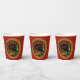 This paper cup featuring original digital painting of pale olive green & red plaid pattern bordered w/red plaid & solid black as the perfect backdrop for our faux stained-glass turkey. Add matching placemats & napkins for an inviting Thanksgiving table & all season long. Add cookies for hostess gift!