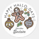 This Happy Hallo-days sticker is a fun way to bring both Halloween and Christmas together in one festive design. The artwork combines spooky Halloween details like skulls, ghosts, and a gingerbread cookie decorated with skeleton icing with classic Christmas touches such as ornaments and holiday colours. Personalise with your name or family name to make it your own. This round sticker is perfect for sealing envelopes, adding a special touch to holiday cards, or using as unique gift tags during the season.