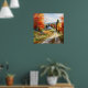Cosy Fall In Vermont Village Watercolor Art Poster