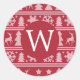 Cosy Knit Red Sweater Pattern Monogram Christmas Classic Round Sticker