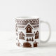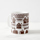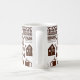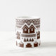 Embrace the cosy feeling of a winter getaway with this Nordic Knit Pattern Classic Coffee Mug. Featuring a charming monochrome village scene with knit houses, pine trees, cosy mugs, and log piles, this design brings Hygee straight to your home. The beige-on-brown pattern offers a perfect Rustic Farmhouse or Cabin aesthetic. It's the ideal Holiday Gift or a charming addition to your own seasonal decor. Warm up your hands and your heart with every sip.
