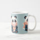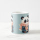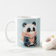 An utterly adorable illustration of a fluffy panda getting cosy for the winter. Dressed in a warm blue jacket and a stylish pink scarf, this sweet bear is holding a large mug of steaming hot chocolate topped with marshmallows. With gentle snowflakes falling in the background, this image is the epitome of winter comfort and cuteness.