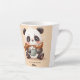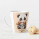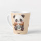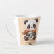 An utterly adorable illustration of a fluffy panda getting cosy for the winter. Dressed in a warm blue jacket and a stylish pink scarf, this sweet bear is holding a large mug of steaming hot chocolate topped with marshmallows. With gentle snowflakes falling in the background, this image is the epitome of winter comfort and cuteness.