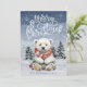 Share the joy of Christmas with our Cosy Polar Bear with Red Scarf Christmas Card. This enchanting card showcases a loveable polar bear, beautifully depicted in watercolor, wearing a festive red scarf. It's a wonderful choice for winter lovers, fans of cute Arctic animals, and anyone who appreciates the charm of snowy holidays. Add your family name and a personalised message for a truly unique touch.