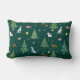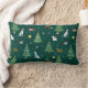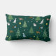 A cute pillow with playful dachshunds, dalmatians, and westies surrounded by snowflakes, decorated fir trees, and festive presents. The wintry design, set against a green background, brings a cheerful Christmas atmosphere to any space.