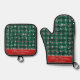 Cosy Red & Green Buffalo Plaid Snowflakes Custom Oven Mitt & Pot Holder Set