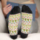 Adorable personalised Christmas socks created using hand painted watercolor Christmas motifs arranged in a whimsical cosy sweater inspired stripe pattern. Perfect to wear all season long. Original art by Leslie Larson,
