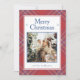 This holiday card features a warm coloured check pattern (also known as plaid, or tartan) to give cosy Christmas and holiday vibes. The traditional styling is continued with the use of classic fonts and clean lines for a festive and preppy aesthetic suitable. Fully customisable wording and photo!