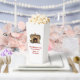 Favour box with a warm and cosy illustration featuring an old fashioned fireplace. Stocking hanging with care. Garland hanging over the mantel. A warm roaring fire in the hearth.