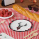 Cosy & Warm Vintage Wilderness Reindeer Christmas featuring our rustic vintage style hand-drawn black etched ink wilderness reindeer wearing glasses, with a cosy red buffalo plaid winter scarf wrapped around the reindeer's neck. The design incorporates a modern flair and paired with the cosy and warm feeling of red buffalo plaid to create this trendy and stylish Christmas holiday design. Personalised with monogram initial and name. All artwork contained in this Cosy & Warm Vintage Wilderness Reindeer Christmas paper plate are hand-drawn original artwork by Moodthology. You can customise the text size, text colour, font and layout for your own personal design preference.
