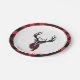 Cosy & Warm | Red Buffalo Plaid Reindeer Monogram Paper Plate