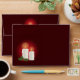 Destei's original illustration of festive Christmas candles on a red background colour.