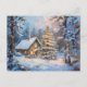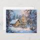 magical winter scene featuring a snow-covered cottage adorned with a glowing Christmas tree, beautifully rendered in oil painting style.