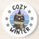 A cute owl wearing a winter scarf and the big words happy winter. For everyone, who loves winter vibes and cute animals.