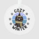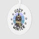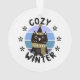 A cute owl wearing a winter scarf and the big words happy winter. For everyone, who loves winter vibes and cute animals.