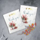 Cosy winter watercolor design featuring modern handwritten style script, bouquet of rowanberry and evergreen tree twigs on snowly background. This delightful invitation sets a perfectly hygge scene The text can easily be personalised for a unique one of a kind design for your special day.