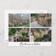 Postcard with a collage of the honey-coloured limestone architecture of the Cotswolds cottages in the small villages like Tetbury, Castle Combe and Bibury in England, UK with a white border and the text: 'Cotswolds'.